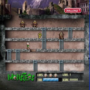 Monsters is a classic arcade style game. Defeat the monsters before they get you. The game featured optimized collision detection using circles to represent the objects. The artifical intelligence for the monsters was rule based using finte state machines.